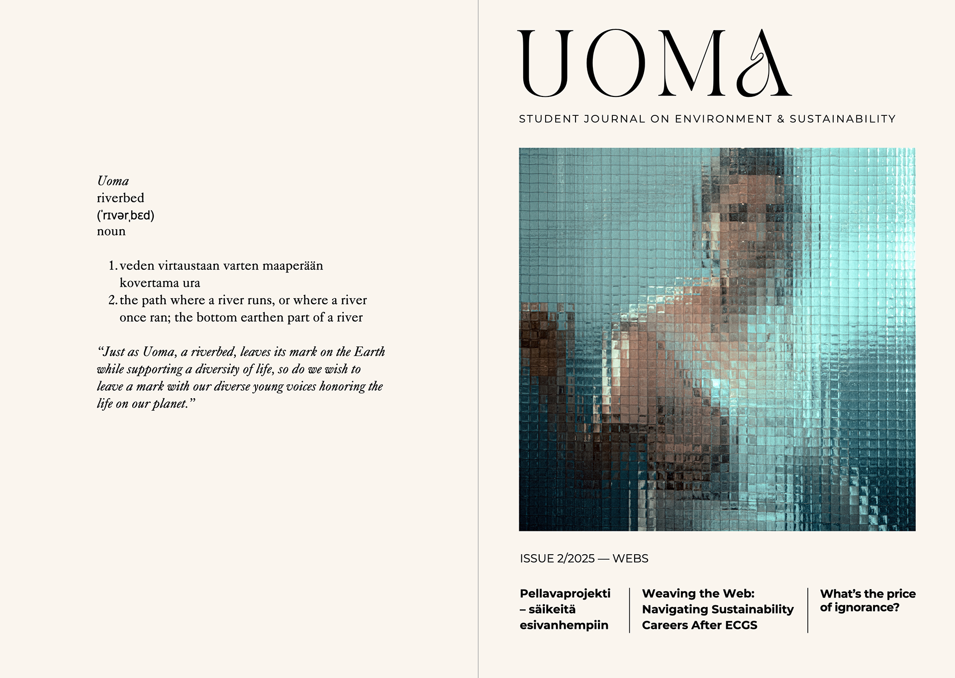 UOMA is a student-run journal rooted in the Master’s programme in Environmental Change and Global Sustainability (ECGS) at the University of Helsinki. I have contributed to the visual design and layout of the journal, working with editorial structure, typography and imagery to support the themes of environmental change, responsibility and interconnectedness.