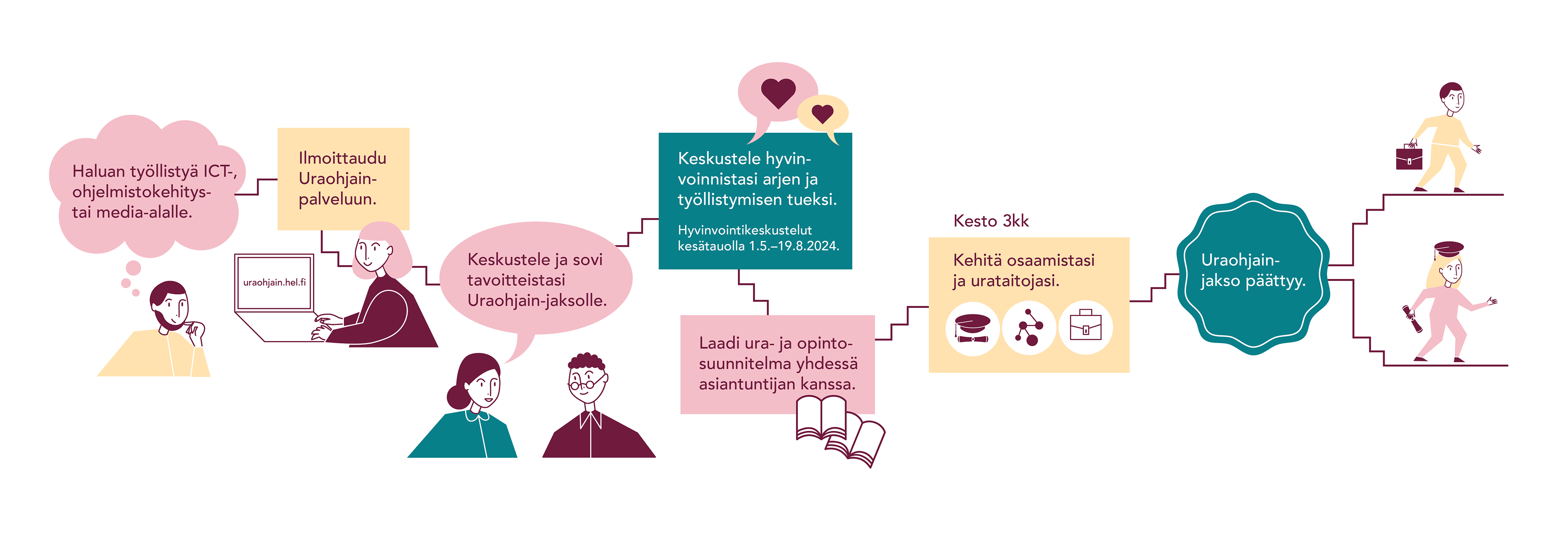Uraohjain+ aims to address labour market imbalances and recruitment challenges in sectors with large numbers of highly educated unemployed professionals. The project provides tailored services to meet the skills and training needs of both jobseekers and employers, with a focus on improving work ability and long-term employability and developing a more sustainable employment model.
